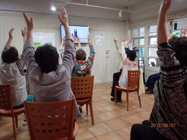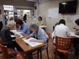 あいあい食堂では、午前中は介護予防や健康増進を目的としたあいあい体操を、午後は毛筆講座や健康麻雀など余暇的なプログラムを日替わりで開催しています。参加者は「家に閉じこもりがちだったが、参加するのが楽しみ。今は講師として人に教えることが、生きがいになっている」といいます。